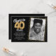 Celebre o grande marco de completar quarenta anos com nossos convites de aniversário elegantes. Com um fundo preto moderno personalizável, um espaço para foto pessoal e detalhes em dourado, esses convites certamente deixarão uma impressão duradoura. Os detalhes do balão de hélio dourado adicionam um toque de magia, enquanto o modelo de texto de aniversário de 40 anos é fácil de personalizar. Porque o estilo não tem limite de idade!