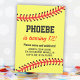 Convite Simples Para Aniversário De Softball | Envie estes simples convites de aniversário para suas amigas para comemorar seu aniversário de todas as estrelas! Este convite para o softball amarelo e vermelho é facilmente personalizável e inclui uma faixa preta e amarela para trás! Quer mais? Basta clicar no nome do link azul do nosso compro (TKM Party Printables) acima do botão personalizar para ir à nossa loja!