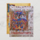 Design de Natal elegante, clássico, brilhante e alegre, em pergaminho com a antiga Florentine floral e uma brilhante pedra azul da safira 3D, para reuniões familiares e festas de férias, elaborado a partir da miniatura medieval italiana num antifonário por Francesco Di Giorgio Martini