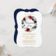 Elegante Watercolor Burgundy Marsala Floral Wreath Convite de festas de Natal. Inclui belos rosas e verde botânico. Estilo do suporte. Dourado Script. Azul De Volta.