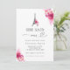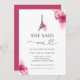 Surpreenda seus entes queridos com este belo convite, apresentando floral rosa brilhante, torre de eiffel e detalhes editáveis. Personalize-o facilmente clicando na opção "personalizar".