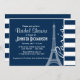 Convite Paris; Faixa Horizontal Azul-Meia-Noite Escura