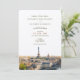 Apresentando o Convite Casado "Paris", lindamente pintado em aquarelas! Este convite maravilhoso apresenta um típico horizonte de Paris, completo com a icônica Torre Eiffel, encantadora rua de pedra e o Arc de Triomphe. Nosso convite é personalizável, para que você possa facilmente editar o texto para ajustado dos detalhes do seu casamento. Escolha entre uma variedade de estilos de fonte e cores para corresponder ao seu tema. A impressão de alta qualidade garante que seus convites parecerão excelentes e durarão anos. Convide seus convidados a se juntar a vocês para comemorar seu amor na romântica e bela cidade de Paris com este convite maravilhoso e único. Peça agora e prepare-se para o casamento de destino dos seus sonhos!