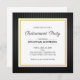 Este convite de festas de aposentadoria apresenta um tema de negócios clássico com um fundo preto e faixas verticais de cinza clara. Uma caixa branca com borda dourada contém texto personalizado para que você adicione seus detalhes de convite.