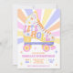 Um design de rolo brilhante e divertido inspirado na paleta colorida, cor-de-rosa, laranja, roxo e amarelo. Na frente está um skate de rolete branco com o texto 'Rolo de Vamos' em um script retrorreflector com uma intermitência arco-íris atrás dele, e na parte de trás está um padrão brilhante e divertido de skates de roletas. Personalize os detalhes do seu partido! Consulte a coleção de partes correspondentes.