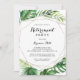 Esse convite de festas geométrico de aposentadoria tropical é perfeito para uma aposentadoria simples. O design apresenta palma verde-aquarela pintada à mão e folhas de bananeira bem organizadas em belos buquês, enfeitando um quadro geométrico dourado.