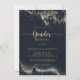 Este gênero de abertura dourado com aquarela revela que o convite de festas é perfeito para um gênero de bebê rústico. O design apresenta uma abertura dourada pintada manualmente em um fundo azul escuro.