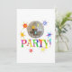 Tempo do partido! Compartilhe de seu lado do divertimento com esta imagem colorida do partido com as estrelas brilhantes e a bola do disco. Use estes convites para sua dança seguinte!