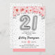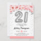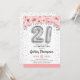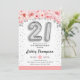 convite de festas aniversário de 21 anos. Design elegante em prata brilhante com sotaque floral. Convide cartão com balões prateados número 21, fonte de script com confetti. Coral cor-de-rosa, branco. Perfeito para uma comemoração de na moda. Envie-me uma mensagem se precisar de idade personalizada.