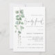 Festa moderna de aniversário de 21 anos de Script Eucalyptus. Estilo botânico minimalista, com verde-aquarela fluindo para o lado esquerdo e texto para a direita. Um script manuscrito para o vigésimo primeiro e o resto do texto que você pode personalizar facilmente.