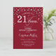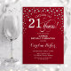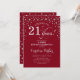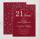 Convite de festas de aniversário de 21 anos surpresa. Design elegante em vermelho escuro e prata brilhante fraca. Apresenta a fonte do script e os diamantes confetti. Alegra-me a 21 anos! Envie-me uma mensagem se precisar de mais personalização.