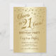 convite de festas aniversário de 21 anos. Design elegante com efeito de ouro brilhante e folha de ouro falso. Possui fonte de script e confetti. Alegra-me a 21 anos! Convide o cartão perfeito para uma festa de dia das mulheres na moda.