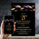 Convite Partido aniversário de 21 anos Dourado Roxo Negro