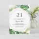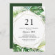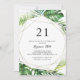 Esse convite de festas de aniversário de 21 anos tropical de destino geométrico é perfeito para um aniversário simples. O design apresenta palma verde-aquarela pintada à mão e folhas de bananeira bem organizadas em belos buquês, enfeitando um quadro geométrico dourado.