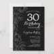 Convite Partido aniversário de 30 anos Floral Branco Negro