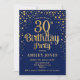 Convite de festas aniversário de 30 anos. Design elegante em azul marinho e ouro brilhante falso. Possui fonte de script na moda e confetti. Envie-me uma mensagem se precisar de idade personalizada.
