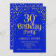 Convite de festas aniversário de 30 anos. Design elegante em azul real e ouro brilhante falso. Possui fonte de script na moda e confetti. Envie-me uma mensagem se precisar de idade personalizada.