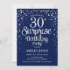 Convite de festas de aniversário de 30 anos surpresa. Design elegante em azul marinho e prata brilhante fraca. Possui fonte de script na moda e confetti. Envie-me uma mensagem se precisar de idade personalizada.