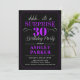 Convite de festas de aniversário de 30 anos surpresa. Design simples em preto, roxo e branco. Apresenta uma fonte elegante de script. Celebração surpresa para homem ou mulher. Pode ser personalizado em qualquer idade!