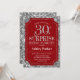 Convite de celebração de aniversário de 30 anos surpresa. Design elegante em vermelho escuro e padrão de prata brilhante. Apresenta uma fonte elegante de script. Envie-me uma mensagem se precisar de mais personalização.