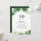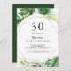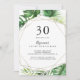 Esse convite de festas aniversário de 30 anos tropical de destino geométrico é perfeito para uma festa de aniversário simples. O design apresenta palma verde-aquarela pintada à mão e folhas de bananeira bem organizadas em belos buquês, enfeitando um quadro geométrico dourado.
