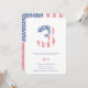 Um convite de festas branco e azul, divertido e vermelho, com cor-de-água, com morangos e mirtilos pintados à mão, dispostos na bandeira dos EUA. Originalmente, pintei as frutas individualmente em papel de aquarela de algodão a 100% e digitalizei-as em formato digital e arranjei-as numa aproximação das "Estrelas e Stripes"