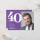 Crie memórias duradouras na sua cesta de aniversário de 40 anos com esses convites de festas de aniversários roxos de tendências! Apresentando uma fonte grande e ousada serif que mostra o número '40', uma foto do aniversariante / menina, e um modelo moderno que é fácil de personalizar, esses convites irão capturar o espírito da ocasião. Com o seu design único, estes convites de tipo único certamente farão com que seus amigos e família fiquem entusiasmados por uma celebração inesquecível. Então, não perca mais seu tempo de precioso procurando pelo convite perfeito; esses convites de festas aniversário de 40 anos elegantes são o sinal perfeito para celebrar esta ocasião importantíssima. Faça as memórias durarem uma vida com estes convites especiais e faça deste aniversário marco uma experiência inesquecível.