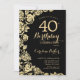 Convite de festas Floral Dourado preto. Design elegante com rosas, folha de ouro falsa e letra de script de tipografia. A Trendy convida o cartão perfeito para uma festa de na moda. Pode ser personalizado para qualquer idade. Impressos convites Zazzle ou modelo de impressão digital instantânea para download.