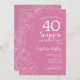 Convite de festas de aniversário de 40 anos de Surpresa Floral Rosa. Design minimalista moderno com sotaques botânicos e letra de escrita tipográfica. Simples carta de convite feminina perfeita para uma festa surpresa na moda. Pode ser personalizado para qualquer idade.