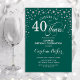 Convite de festas de aniversário de 40 anos surpresa. Design elegante em verde esmeralda e prata brilhante falso. Apresenta a fonte do script e os diamantes confetti. Saúde para 40 anos! Envie-me uma mensagem se precisar de mais personalização.