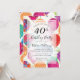 Convide seus convidados de aniversário de 40 anos com estilo com este moderno convite de placa plana com um fundo de balões com padrões fractais coloridos em rosa, vermelho, roxo e ouro. Os detalhes do seu partido para personalizar estão na tipografia negra em uma camada branca opaca. A parte traseira do cartão tem um padrão de balões coloridos em branco. Elaborado por ©Tim Coffey e Susan Coffey.