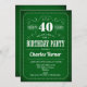aniversário de 40 anos convite de festas em verde e branco. Convite de aniversário elegante para adultos para homens ou mulheres. Apresenta a fonte do script de tipografia retrô. Saúde para 40 anos! Convidar cartão perfeito para uma festa de na moda.