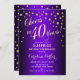 Convite de festas de aniversário de 40 anos surpresa. Design elegante com ouro brilhante e roxo. Possui fonte de script e confetti. Saúde para 40 anos! Me mande mensagem se precisar de uma idade personalizada.