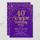 Convite de festas de aniversário de 40 anos surpresa. Design elegante em roxo real e ouro brilhante. Possui fonte de script na moda e confetti. Envie-me uma mensagem se precisar de idade personalizada.