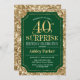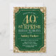 Convite de celebração de aniversário de 40 anos surpresa. Design elegante em verde-escuro da floresta e padrão de ouro brilhante. Apresenta uma fonte elegante de script. Envie-me uma mensagem se precisar de mais personalização.