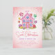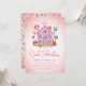 Doce Celebração Convite para Aniversários de criança Candyland. Convite com roteiro de caligrafia ''doce celebração'' em uma casa cor-de-rosa, cor-de-rosa-moda, sobre um fundo cor-de-rosa pastel com borrachas coloridas. Personalize com um nome e detalhes da festa.