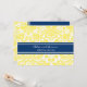 Convites de festas feitos sob encomenda do jantar de ensaio em azuis marinhos escuros modernos e elegantes, no chique amarelo e branco do limão brilhante - e no teste padrão floral clássico do vintage do damasco. Personalize o texto para criar um convite original para seu jantar de ensaio do casamento. Contacte-nos para pedir uma mudança da cor. Disponível em muitos produtos de harmonização do casamento.