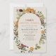 Um design chic com florais focalizados, com um cabeçalho que diz " família, amigos, peru e muitas tortas" inclui um modelo nas costas para uma mensagem extra para amigos e familiares.