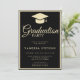 Graduação de fotos em casa do formando do Convite de festas Clássico Preto e Dourado. Adicione suas fotos favoritas com uma elegante caligrafia de script e colagem de grade de fotos.