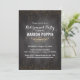 convites de festas de aposentadoria clássicos para professores com tema de quadro negro e sotaque de ouro- Lê 'Por favor, junte-se a nós para um Partido da Reforma' no topo em letras brancas e elegantes. Vintage falso, fundo de quadro negro com pontos falsos de confete de ouro espalhados por cima e por baixo. Personalizado com o nome de convidado de honra em letras negrito com sombra. Abaixo está um fino e antigo divisor metálico de ouro, elegante. As informações personalizadas sobre a aposentadoria de professores, incluindo detalhes de RSVP, são impressas em letras brancas. A parte de trás tem pontos de brilho dourados falsos correspondentes na parte de cima e na parte de baixo contra um fundo de quadro negro. A bela aposentadoria dos professores convida para serem personalizados com seus próprios detalhes personalizados. Não apenas para aposentadorias de professores. Complementa todas as festas temáticas de preto e ouro ou quadro-negro. Perfeito para esquemas de cores em preto e branco ou preto e ouro ou sofisticados temas de festa do Excelente Art Deco Gatsby.