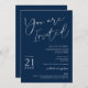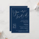 Crie convites personalizados de empresas ou de particulares com este marinho e design de Convite para eventos 'Você é Convidado' prateado. Este elegante falso efeito prateado e convite de celebração da empresa de fundo azul escuro apresenta um layout moderno com um roteiro de caligrafia e espaço para seu logotipo e detalhes do evento. Você pode usar este folheto de marketing profissional para sua festa de lançamento de negócios, janto gala, arrecadação de fundos ou para qualquer função comercial ou privada, simplesmente edite os detalhes do evento para atender às suas necessidades.