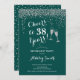 Convite de festas de aposentadoria elegante para homens ou mulheres. Convide cartão em verde esmeralda e prata brilhante fraca. Apresenta a fonte do script de tipografia clássico, óculos de champanhe e confetti. Saúde para a aposentadoria! Personalize com seus próprios detalhes. Pode ser personalizado para mostrar a qualquer ano. Impressos convites Zazzle ou download instantâneo de modelo digital. Perfeito para uma comemoração de na moda.