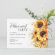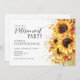 Convite de festas de aposentadoria russo no outono, com flores solares de cor aquosa e douradas, em queda suja, aquarelas de laranja e ouro.