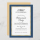 Este convite de festas de aposentadoria surpreendente oferece um traçado profissional elegante com uma marinho de borda azul acentuada com uma borda dourada mais fina. O texto personalizado permite adicionar os detalhes da sua parte de aposentação.