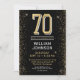 Este fabuloso convite de festas de surpresa de 70, preto e ouro, com o número 70 em ouro, com fontes modernas e lados dourados na frente e uma fabulosa foto em preto e branco no verso seria perfeito para pedir às pessoas que se juntem a vocês enquanto celebram o homem no aniversário de 70 da sua vida. É tradicional e clássico enquanto é fresco, moderno e contemporâneo. Para ver seus convites exclusivos, selecione "Personalizar este modelo" e digite suas informações. É super fácil!