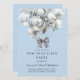 Uma celebração única e moderna do Partido de Ano Novo, com balões de prata com efeito metálico a cores aquáticas amarrados com uma fita. Um simples e elegante design do Partido de Ano Novo que pode ser personalizado para qualquer ano.