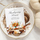 Uma reunião quente e rústica de Ação de Graças, onde a tradição, a gratidão e a união ganham vida em torno da mesa janta. A cena é centrada em uma mesa lindamente definida, enfeitada com velas ouros, flores vibrantes do outono, e um banquete completo com peru torrado e frutas sazonais, símbolos de abundância e colheita. A combinação de tons de madeira suja e folhagem brilhante e feroz captura a essência do outono, evocando sentimentos de conforto, hospitalidade e celebração. O que o torna especial é como ele vai além de uma simples refeição, ele incorpora o espírito da Ação de Graças em si mesmo, um lembrete da comunidade, gratidão e momentos queridos compartilhados com entes queridos.
