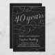 Este convite de festas bonito do aniversário de 40 anos caracteriza flourishes elegantes, caligrafia do roteiro que lê "40 anos," a folha de prata do falso, e um fundo preto chique. Personalize facilmente o convite com seus detalhes do partido.