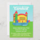 Os miúdos serão excitados para receber este convite de aniversário brilhante e alegre do carnaval que tem uma casa/castelo inflados do salto do divertimento com lotes dos balões coloridos que penduram no lado. Isto é igualmente perfeito para as escolas primárias que estão guardarando um carnaval da escola. Projetado pelo Doodle oxidado.