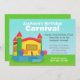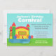 Os miúdos serão excitados para receber este convite de aniversário brilhante e alegre do carnaval que tem uma casa/castelo inflados do salto do divertimento com lotes dos balões coloridos que penduram no lado. Isto é igualmente perfeito para as escolas primárias que estão guardarando um carnaval da escola. Projetado pelo Doodle oxidado.